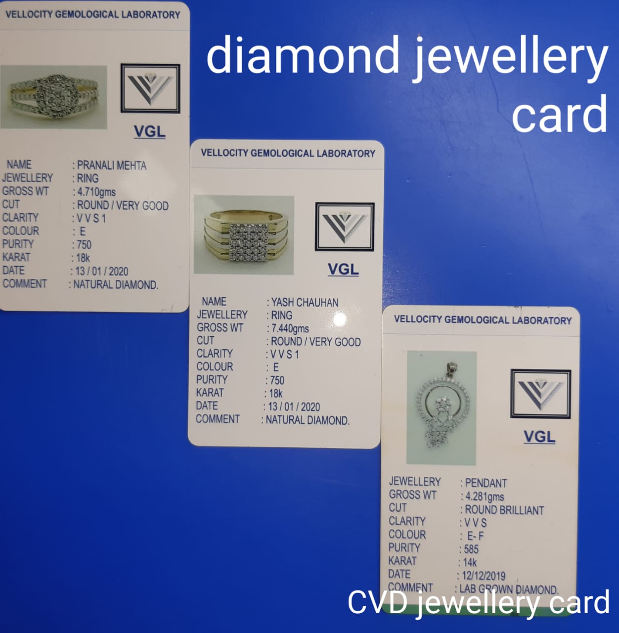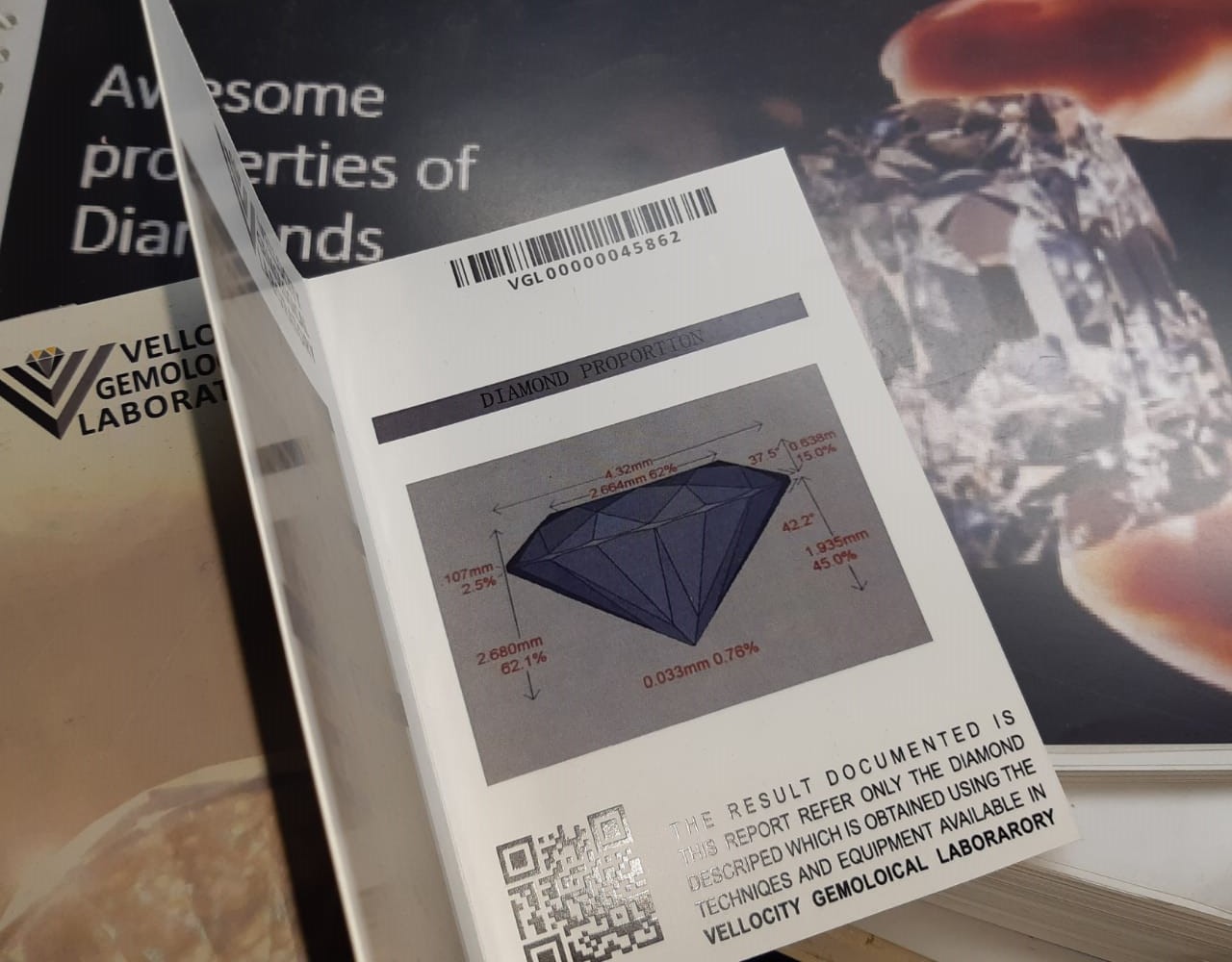 VGL Diamond Reports give an accurate assessment of a diamond's cut, color, clarity and carat weight according to strict international standards.